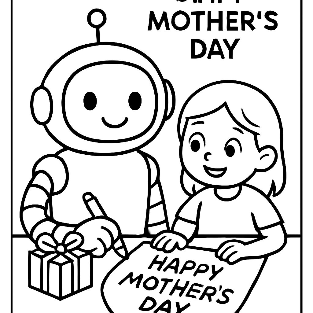 Disegno da colorare per la Festa della Mamma con robot e bambino