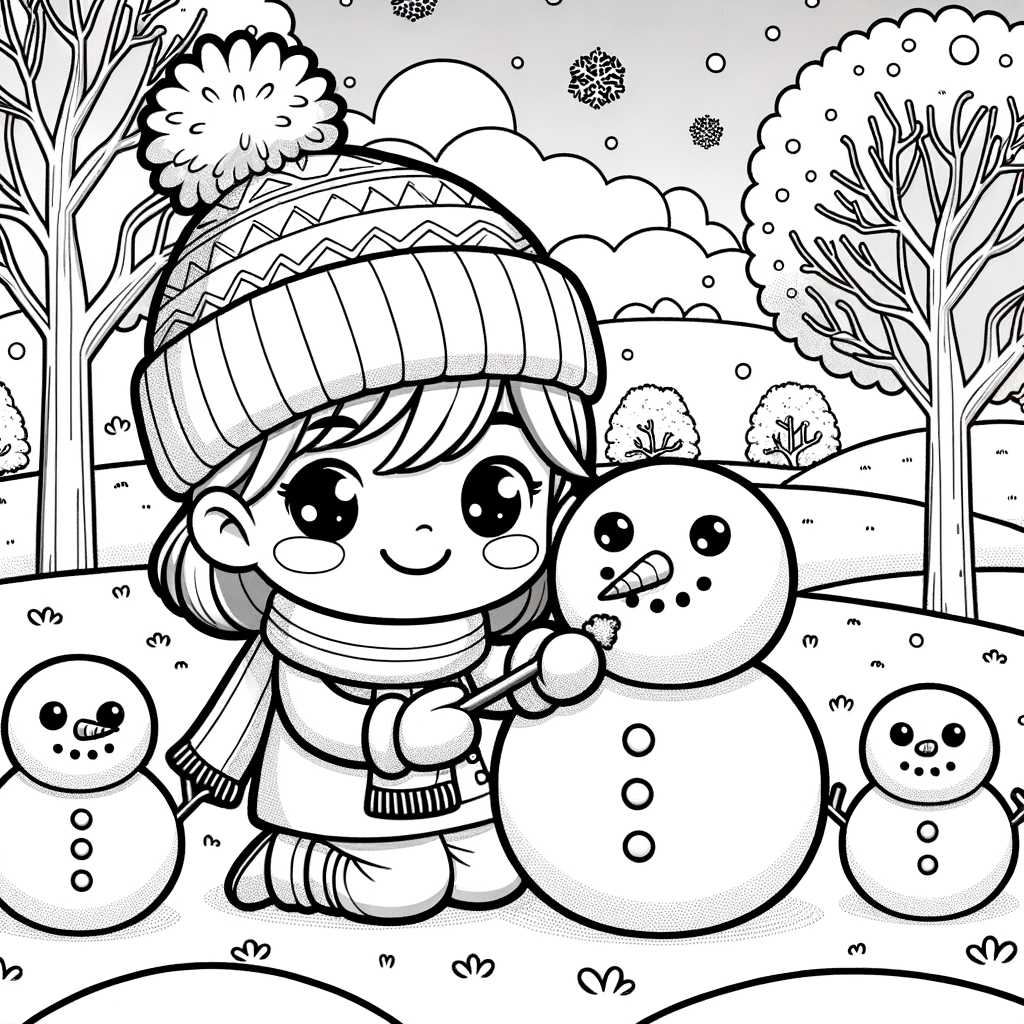Scopri il nostro delizioso disegno da colorare che ritrae un bambino felice intento a costruire un pupazzo di neve in un paesaggio invernale. Questo disegno cattura la gioia e l’innocenza dell’infanzia, mentre il bambino indossa un caldo berretto e una sciarpa colorata, immerso in un’atmosfera magica di neve e natura. I tre pupazzi di neve, ognuno con la propria espressione, aggiungono un tocco di divertimento alla scena.