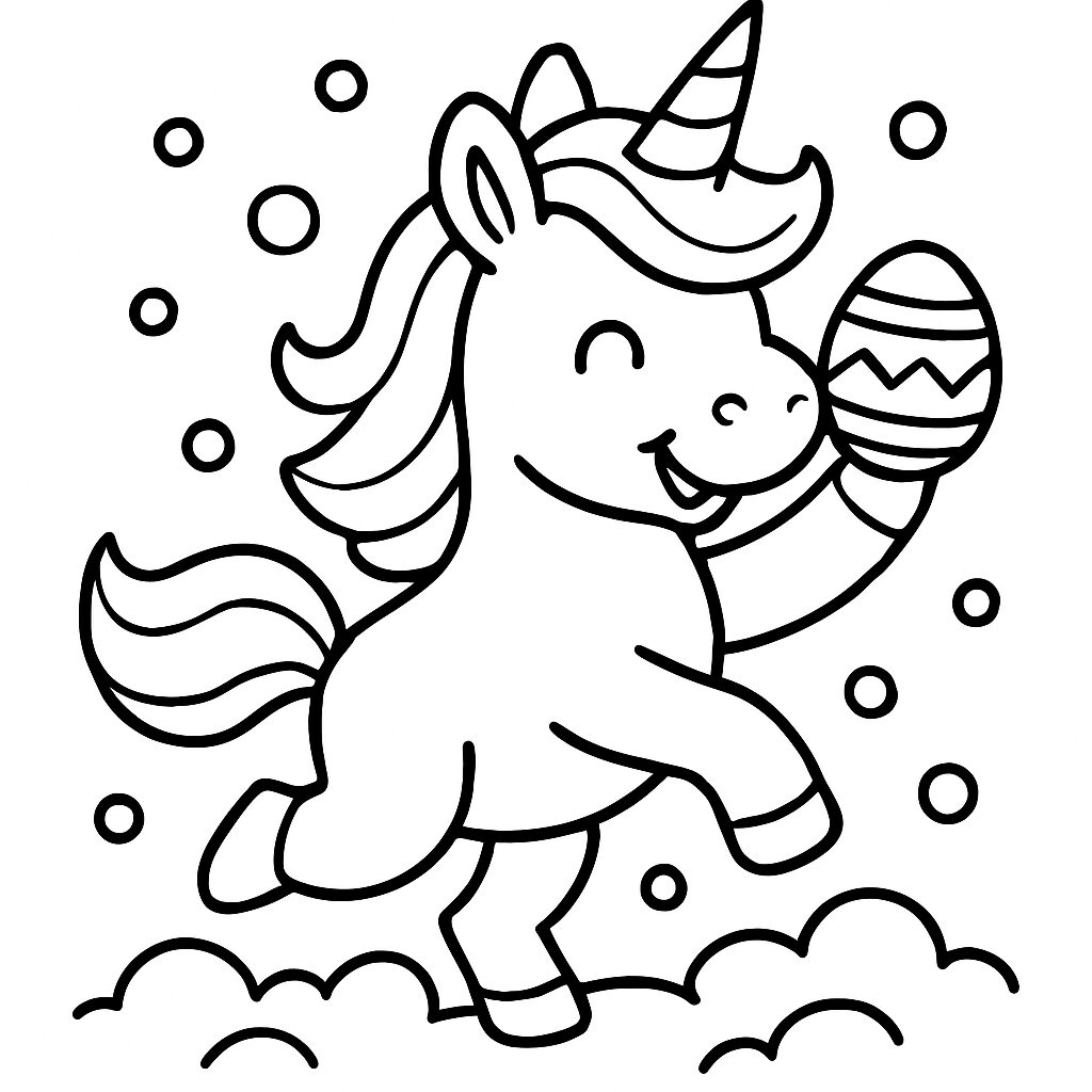 Unicorno festoso con uovo di Pasqua da colorare
