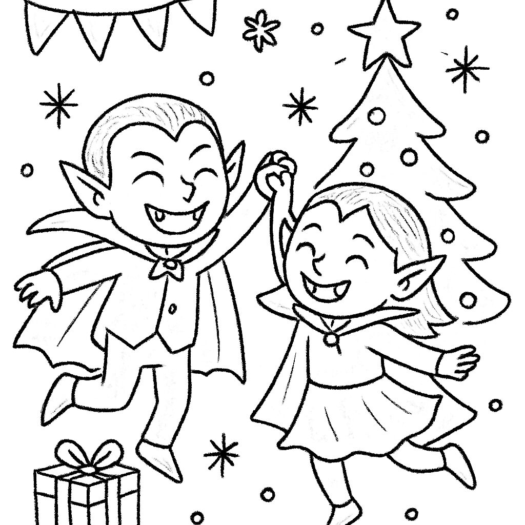 Vampiri festosi che ballano sotto l’albero di Natale da colorare